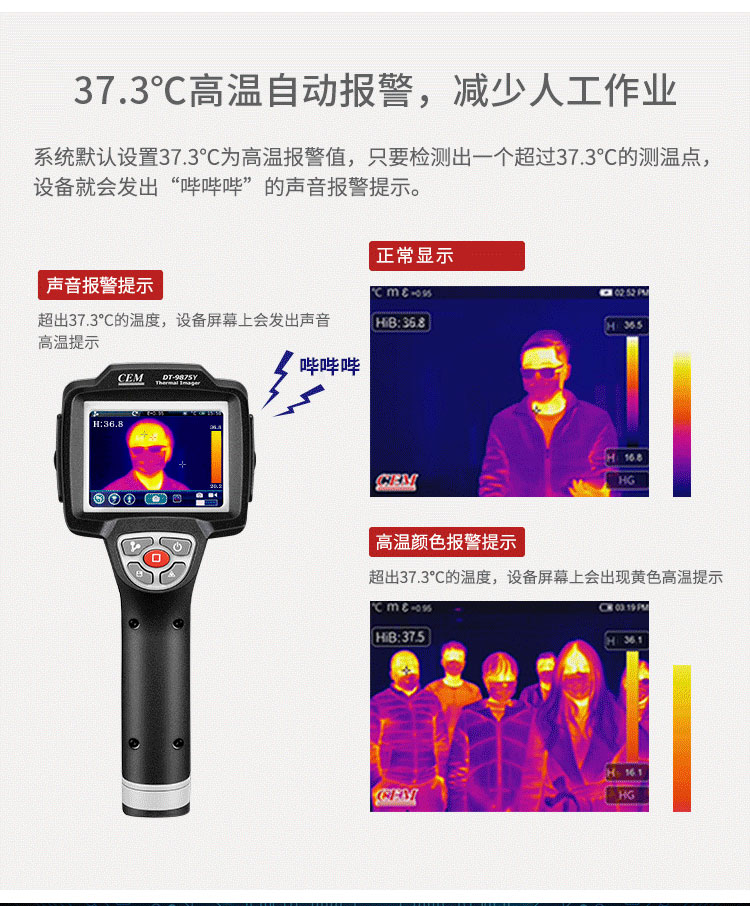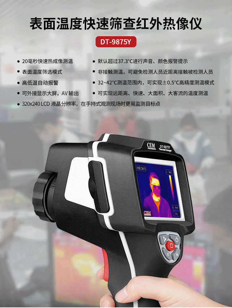 分辨率:160*120、圖像幀頻:50HZ、篩查測(cè)溫范圍:32-42℃、AV輸出大屏全屏顯示