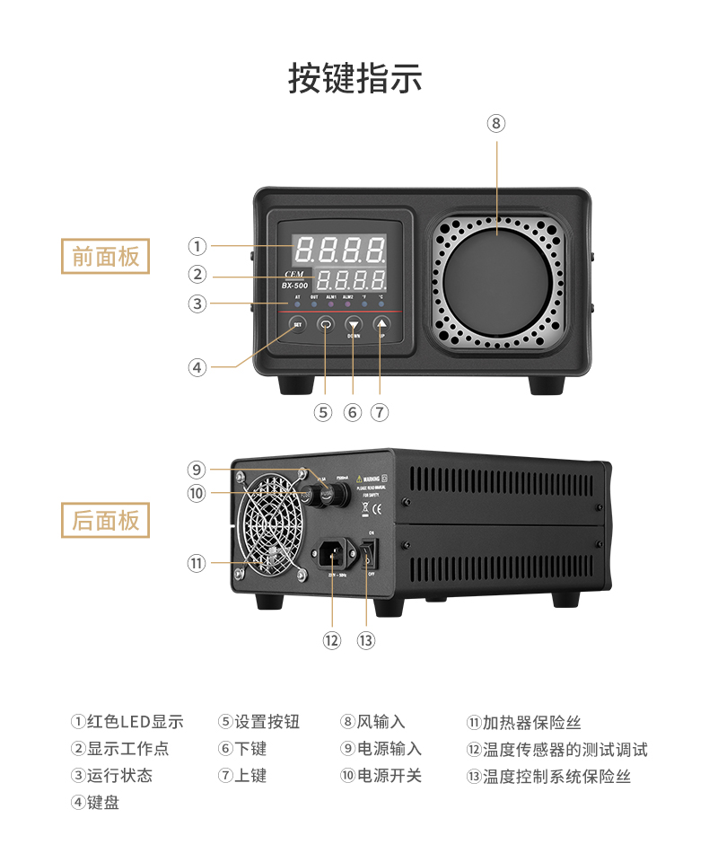 BX-350校準(zhǔn)溫度為50℃~350℃;BX-500校準(zhǔn)溫度為50℃~500℃;