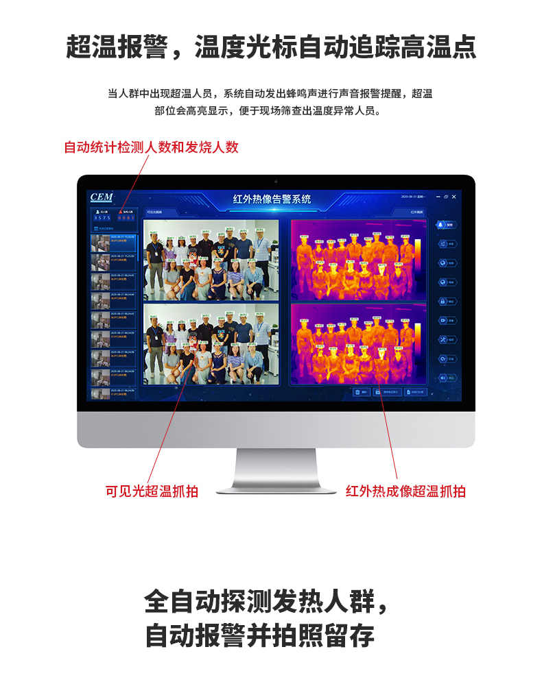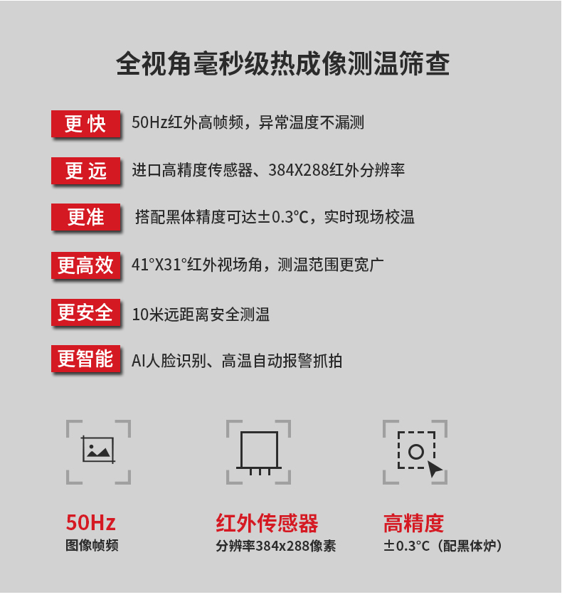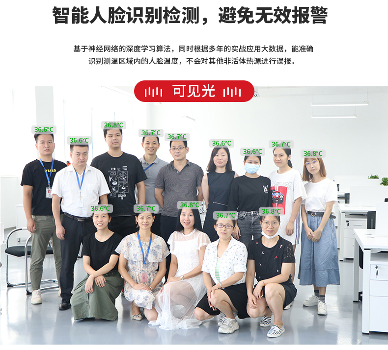 ·標(biāo)配黑體,實(shí)時(shí)溫度校正,測(cè)溫精度士0.3°℃·智能快速識(shí)別測(cè)溫,效率可達(dá)900人/分鐘·AI人臉識(shí)別,排除異常熱源干擾,誤報(bào)率更低20年非接觸紅外測(cè)溫研發(fā)經(jīng)驗(yàn),測(cè)溫更優(yōu)更準(zhǔn)確