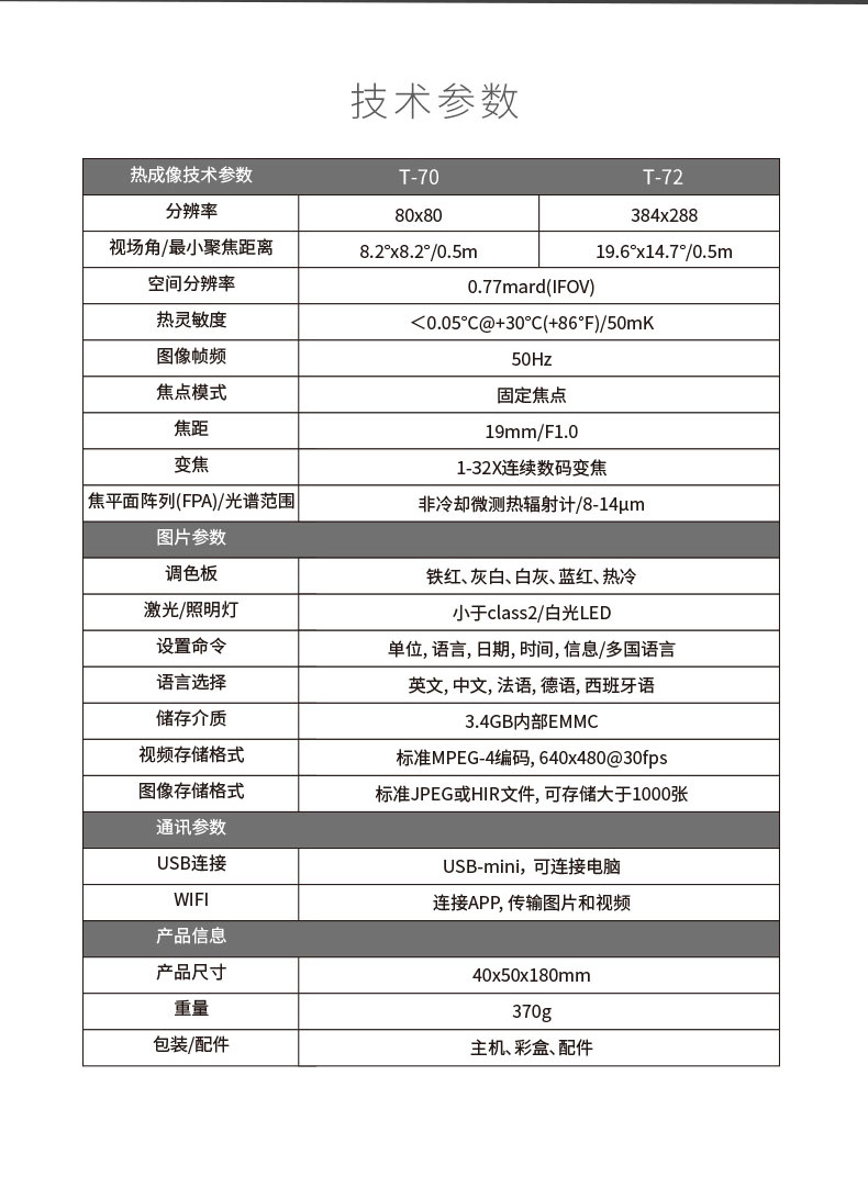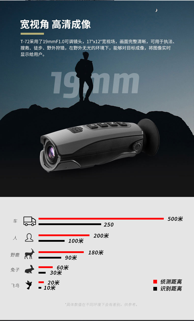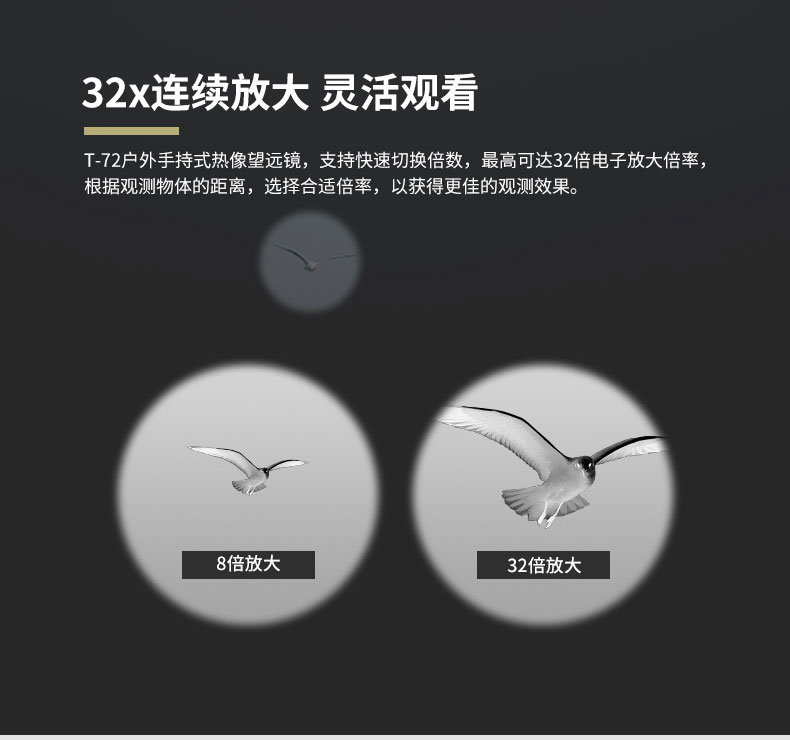 T-72系列熱成像儀望遠(yuǎn)鏡 ●384*288進(jìn)口傳感器 ●32倍連續(xù)放大靈活觀看 ●50Hz高圖像幀頻 ●WIFI連接實(shí)時(shí)圖像傳輸 ●可選外接大屏