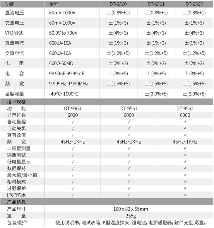 華盛昌DT-9560工業(yè)級數(shù)字萬用表產(chǎn)品產(chǎn)品特點:
