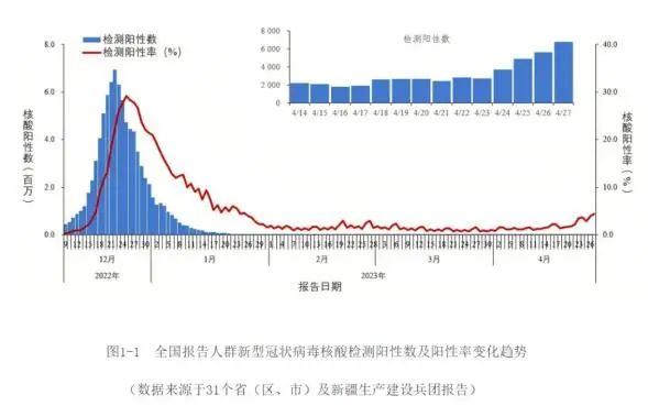 從中國疾病預防控制中心發(fā)布的數據來看,目前陽性案例確實在增加,但總數仍較少。國內12月-1月感染高峰之后,新冠病毒并沒有完全消失,而是維持著低于1%的檢測陽性率。而近期,新冠陽性人數和檢測陽性率都有上升趨勢,4月27日檢測陽性率為4.4%。